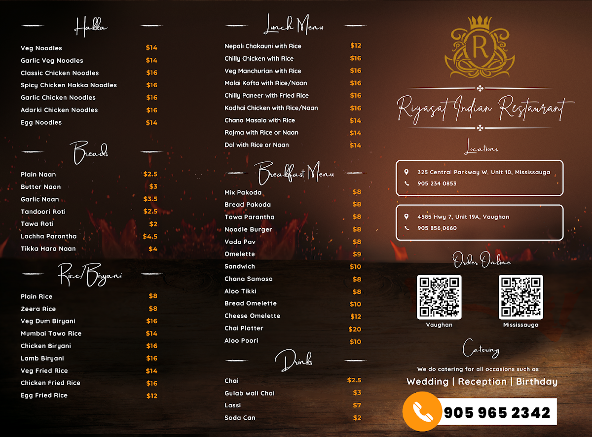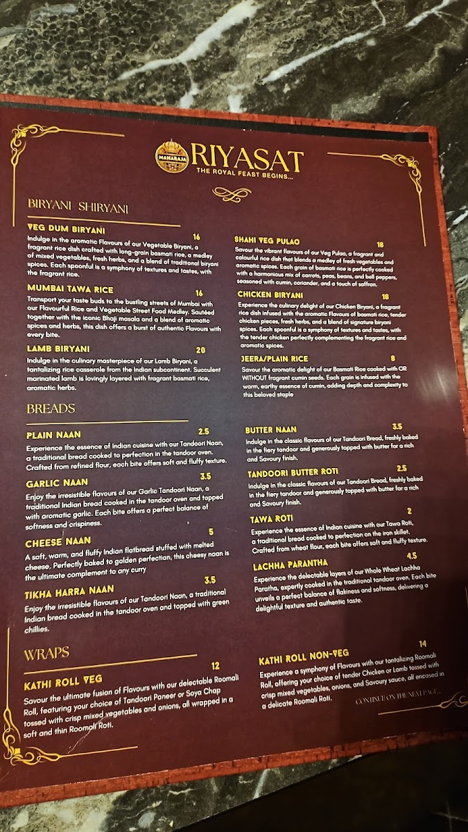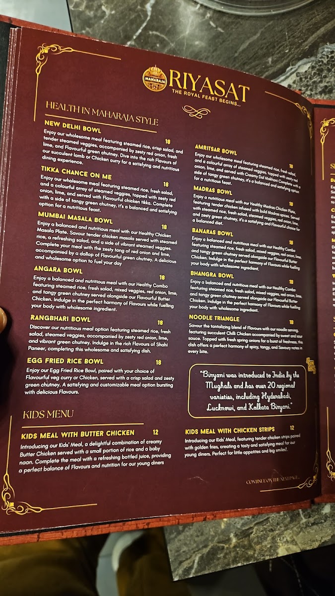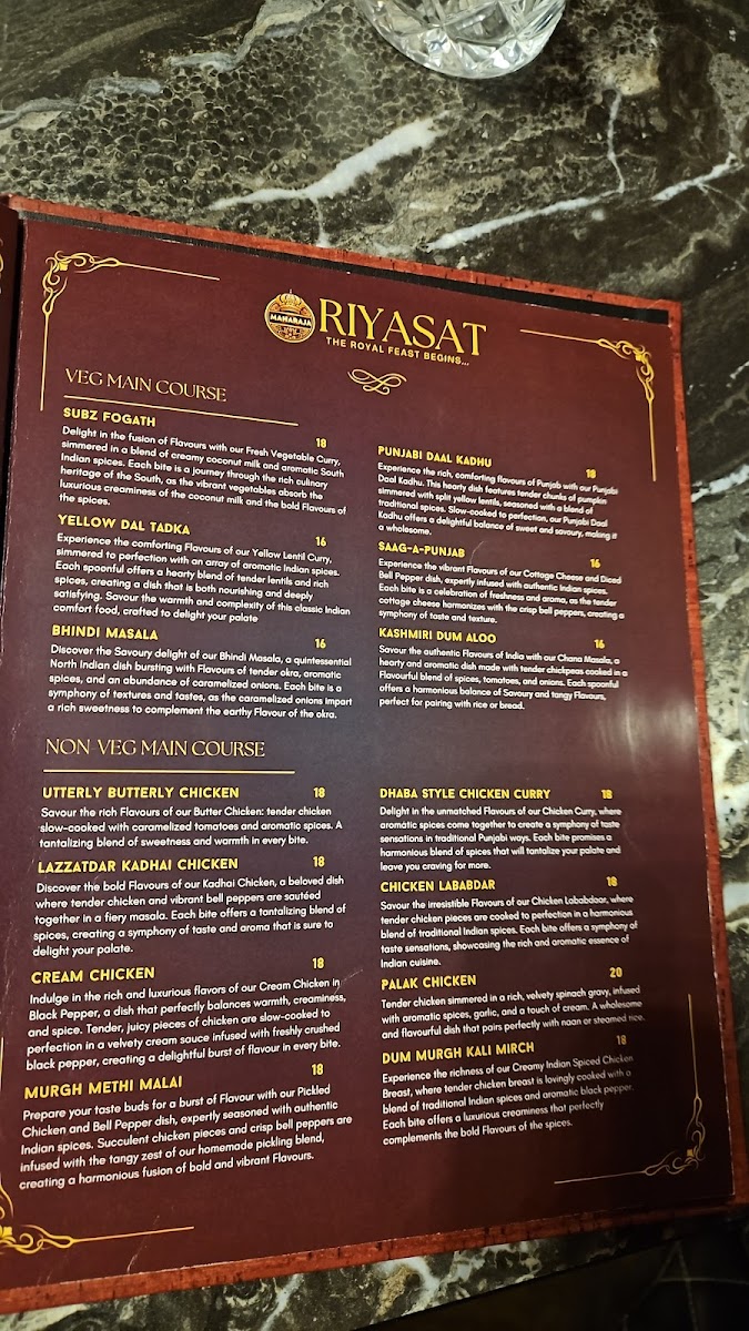 Introducing the Menu at Riyasat Indian Restaurant and Bar